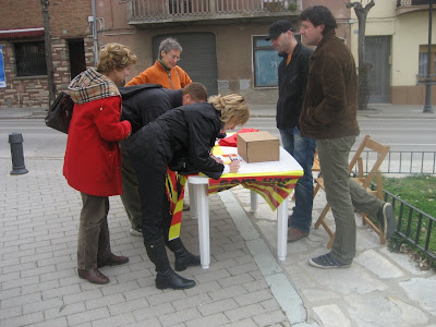 Diumenge a les 9 del mati, Taradell Bloc amb els voluntaris convocats mitjançant aquest web, vam muntar una taula per recollir signatures pel Dret de Decidir a la cruïlla de la carretera de Balenyà amb el Passeig Sant Genis.