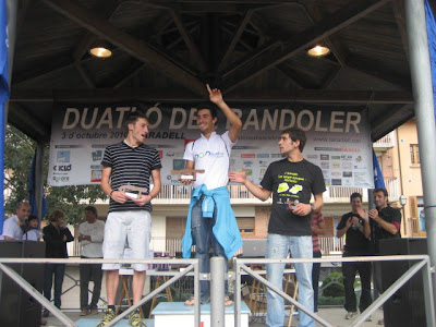 A 2/4 de 2 del migdia els guanyadors del duatló han pujat al podi.