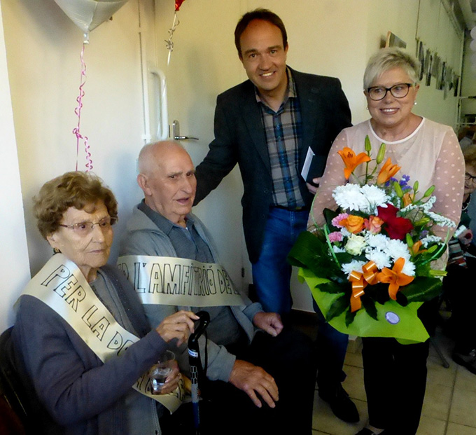 L’alcalde, Lluís Verdaguer, i la regidora de Benestar Social, Araceli Garcia, van visitar Lluís Reig. Com és habitual quan una persona arriba als 100 anys d’edat, se li va va lliurar un ram de flors i la medalla centenària.