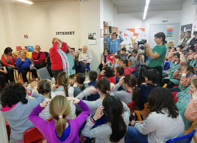 Així, els alumnes del col·legi són els que cerquen avis i iaies, besavis i besàvies, i els fan entrar de nou a l’escola on canten aquelles cançons infantils, religioses, de bressol, picaresques, amoroses…que recorden.