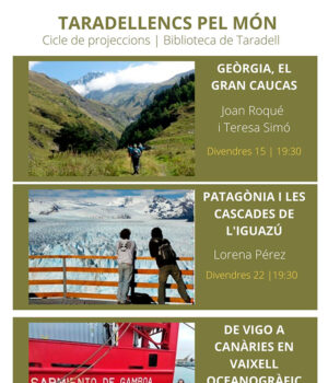 El proper 22 d’octubre serà el torn de Lorena Pérez amb la projecció titulada ‘Patagònia i les Cascades de l’Iguazú’, on parlarà de l’Argentina i el seu patrimoni natural. Finalment, el 29 d’octubre es projectarà ‘De Vigo a Canàries en vaixell oceanogràfic’. Anirà a càrrec de Joan Carles Abella i explicarà el projecte de recerca realitzat amb un vaixell oceanogràfic que van realitzar 24 científics.