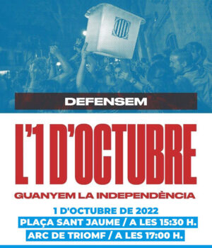 Les mobilitzacions a Barcelona es concentraran a la Plaça Sant Jaume a 2/4 de 4 de la tarda i a l’Arc de Triomf a les 5 de la tarda. El lema és ‘L’1 d’Octubre guanyem la independència’.